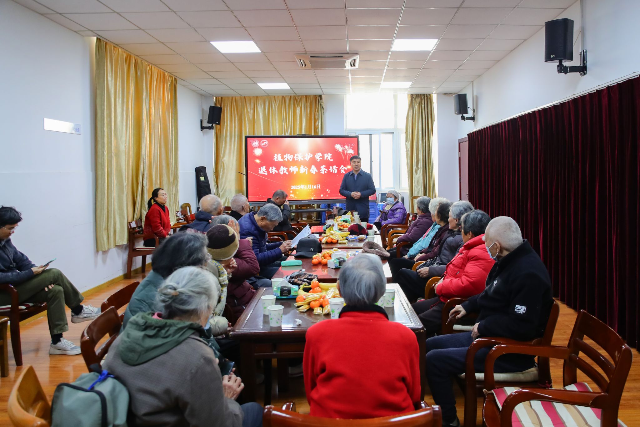 许承保在会上代表学院对各位退休教师致以亲切问候和美好祝福,为退休教师对学院各项事业的发展作出的贡献表示崇高敬意和衷心感谢。同时,向各位退休教师们详细介绍了学院2024年取得的新成绩,并重点汇报了学院联合申请的农林生物安全全国重点实验室获批建设。一年来,学院全面开展党纪学习教育,持续推进高质量的党建引领学院高质量发展,学科建设再创佳绩,教育教学水平不断提升,双创实践持续突破,师资队伍建设取得显著成效,科学研究成果丰硕,社会服务成绩优异,国际交流持续拓展,顺利完成学院整体搬迁滨江校区。他希望退休教师们继续发挥好薪火相传的传承作用,为学院的高质量发展多提宝贵建议和意见。