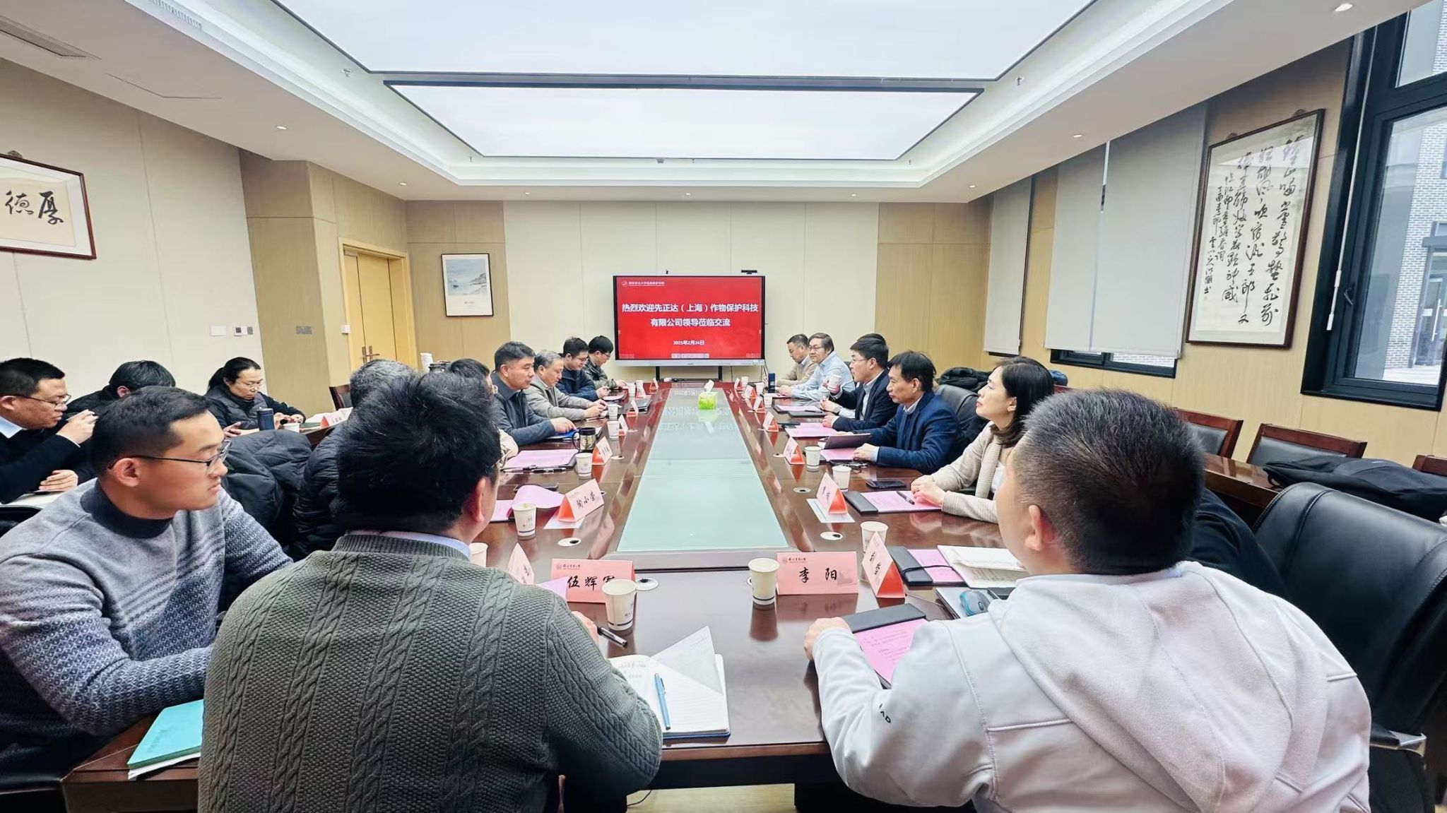 2月24日下午,先正达(上海)作物保护科技有限公司党委书记于皓,副总经理袁天文,党委委员、中化作物保护品有限公司总助傅雷等一行来我院开展党建结对共建。学院党委书记许承保,院长张正光,副院长董莎萌、华修德等相关人员参加会议,会议由许承保主持。