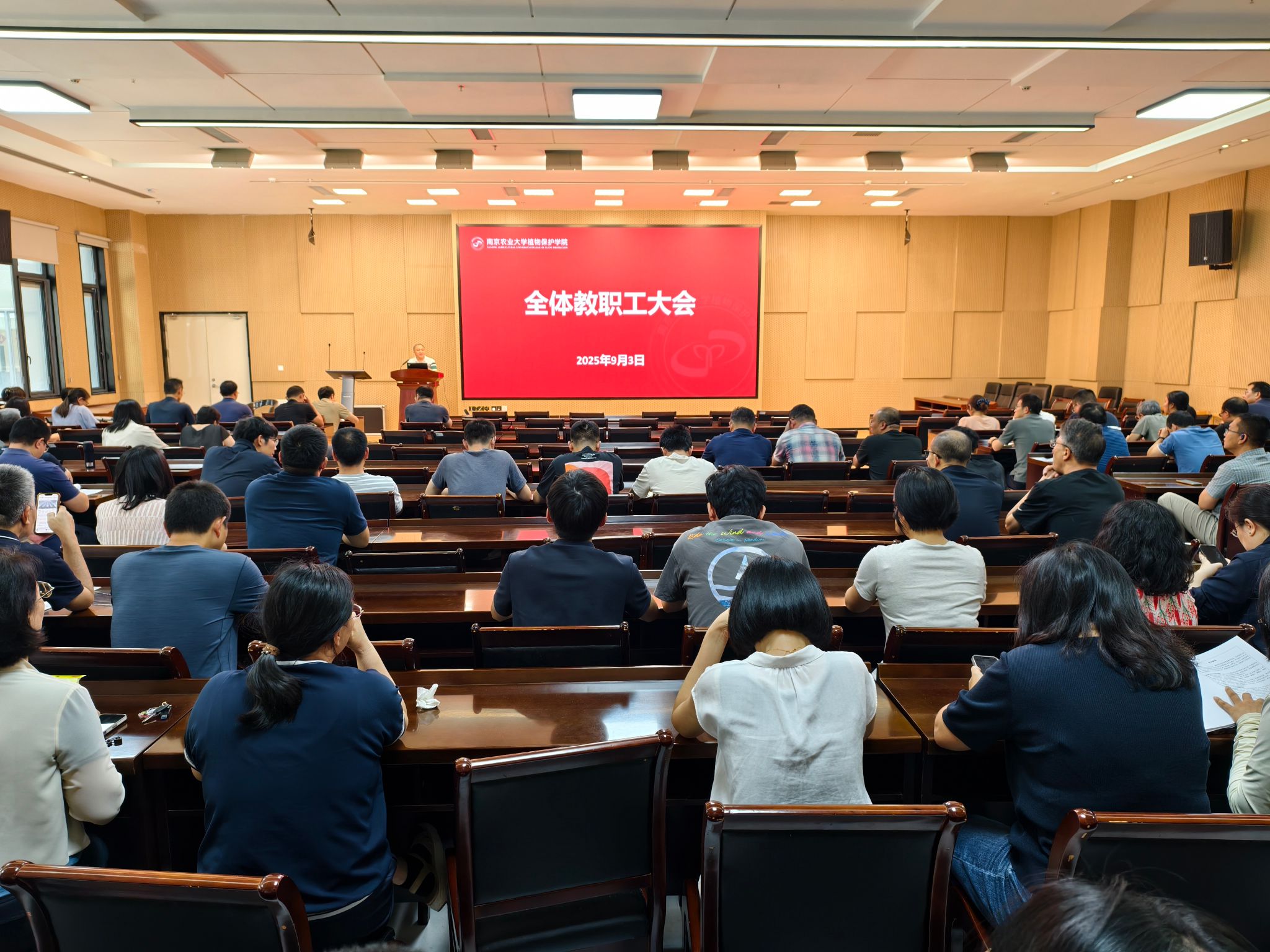 副院长(主持工作)董莎萌简要回顾了学院上半年在教学科研、项目申报、人才引育等方面取得的主要进展,并对下半年工作进行部署。他强调,在肯定成绩的同时,必须清醒认识当前面临的形势与挑战,全院上下要切实提升科研创新的能力,聚焦农林生物安全、生物农药等前沿领域,力争培育更具影响力的重大成果;要深化社会合作,围绕国家粮食安全和生态文明建设需求,提升学院服务国家战略的能力;要强化学科建设,持续提升植物保护学科核心竞争力与国际影响力,推动产出更多标志性高水平成果。