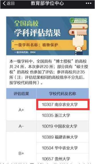 据悉,第四轮学科评估是教育部学位与研究生教育发展中心连续15年自主开展的学科评估,于2016年4月启动,历时一年多。评估对象是具有研究生培养和学位授予资格的一级学科。本次评估全国共有512个单位的7449个学科参加。其中,植物保护学科全国具有“博士授权”的高校共24所,本次参评20所,部分具有“硕士授权”的高校也参加了评估,共计35所高校参评。评估结果按照“精准计算、分档呈现”的原则,根据“学科整体水平得分”的位次百分位,将前70%的学科分为9档公布。其中前2%(或前2名)为A+,2%—5%为A(不含2%,下同),5%—10%为A-。