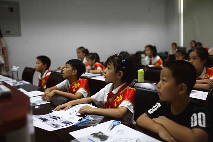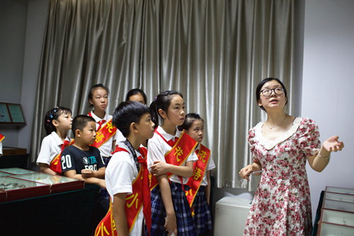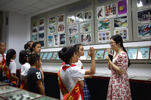 昆虫标本馆里,志愿者热情地为小朋友们介绍栩栩如生的昆虫标本:有五彩缤纷的蝴蝶,大的像手掌一样,小的只有指甲盖大小;有的像森林中随风飘荡的落叶,有的像节日里在空中舞动的彩条;有的身上点着英文字母,有的斑点像阿拉伯数字……还有善于伪装的竹节虫、中国最大的蛾――乌桕大蚕蛾、头顶长触角的天牛等等。小朋友们对这些形态各异的昆虫也展现了浓厚的兴趣,“蝴蝶的翅膀是颜料吗?”志愿者也耐心地回答着孩子们充满童真的问题。