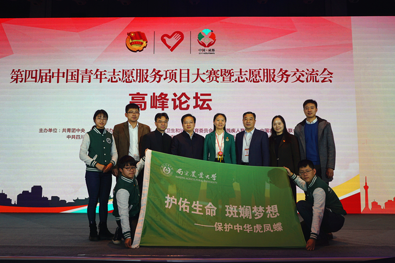 党委副书记刘营军作为特邀嘉宾参会。我院“护佑生命 斑斓梦想”保护中华虎凤蝶项目在校团委副书记谭智赟带队下代表学校参赛,获共青团中央书记处书记尹冬梅、江苏团省委书记司勇的认可与鼓励,最终荣获全国青年志愿服务示范项目创建提名奖,并作为代表项目上台领奖。