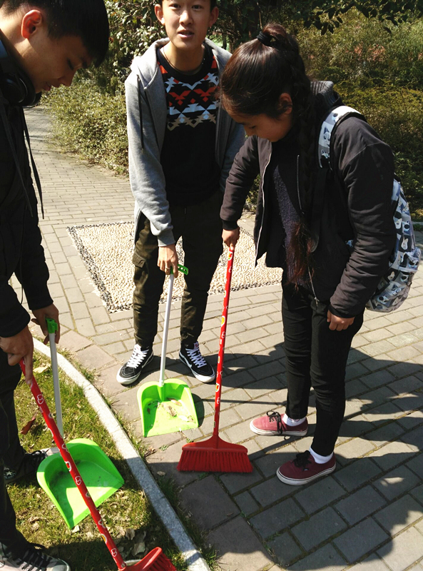 大一同学也同样致力于志愿服务,植保161班的打扫卫生活动在玉兰路展开,162和163班在校园内教学楼区进行“学雷锋,正青春”活动,主要内容是擦黑板、拖地、扫地、倒垃圾、清除桌子上的小广告等。植保164班全体成员则在逸夫楼附近,以寝室为单位分组分区域,捡拾校园内的垃圾。大家都积极为校园的整洁贡献自己的一份力。