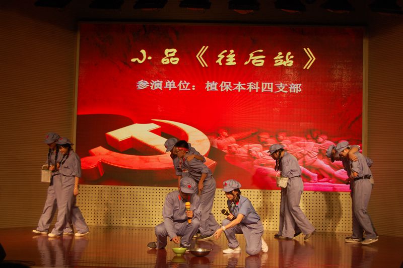 苦难已成历史,新长征路上,我们共唱辉煌未来。学院领导班子和研究生支部的《精忠报国》,声震全场,显示中华儿女报国之志。院长王源超一曲独唱《祖国啊我永远热爱你》惊艳全场,引来掌声雷动。植保三支部情景剧《青春在党旗下飞扬》,展现新时代党员风貌。红歌联唱,点燃爱国热情。退休教职工与教工支部的合唱《共筑中国梦》,铿锵有力的歌声感染在场每位观众,为晚会画上圆满句号。