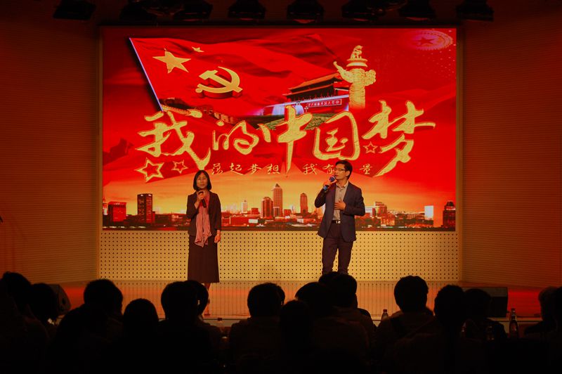 本科生支部一曲慷慨激昂的《走进新时代》正式拉开晚会序幕,“继往开来的领路人,带领我们走进那新时代”,党旗飘扬,引领中华走向新时代,开创新未来。诗朗诵《中华少年》由一支部四位同学深情演绎,尽抒中华少年奋发图强中国梦。在党委副书记黄绍华和王翠花老师《我的中国梦》的美妙歌声中,晚会渐入佳境,“任时间匆匆带不走我的初衷,我的中国梦,永远在我心中”,歌声感染全场。