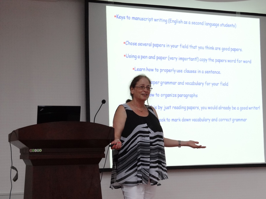 年轻科研人员作了题为“How to prepare a manuscript and insights into the process of manuscript reviewing”的培训报告,她从从编辑的角度讲述了科技论文写作和投稿相关技巧,以及如何成功征服编辑和审稿人。报告期间,Anne Simon教授参观了麻豆av