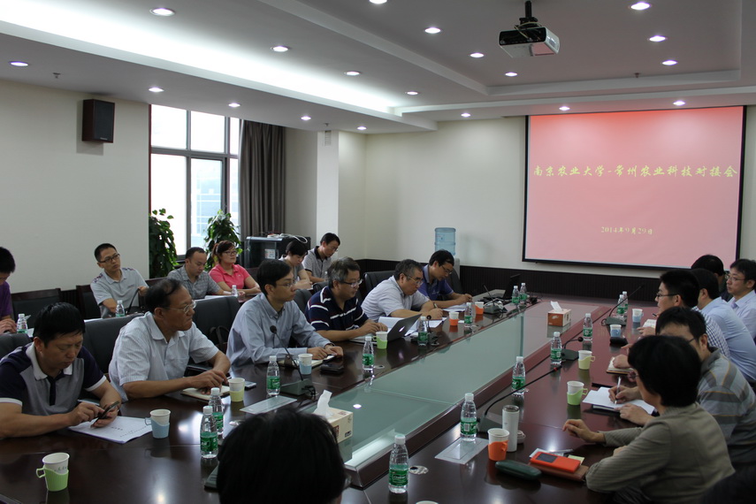 —常州农业科技对接交流会”的顺利举行表示祝贺。会中,我院副院长刘泽文教授介绍了学院的基本发展情况,重点介绍了学院发展状况、高端人才队伍、科研平台建设和科研成果产出等方面。他指出学院对学术成果的应用极为重视,并对学院的技术成果转化抱有极大的信心。常州市科技局蒋鹏举副局长介绍了随团访问的多名企业和研究院所的代表,并介绍了常州农业科技局和麻豆av