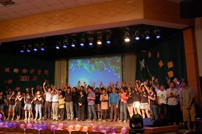 晚会在大合唱《和你一样》中落下帷幕,2011届毕业生的四年的大学生活就此唱响了完结篇。最后,师生同台合影、赠言。学生与老师互拥,老师给予他们温暖的怀抱,希望他们一路走好。瞬间,无人再续欢声笑语,有的只是祝福与被离别气氛感染的淡淡哀伤。一曲终,台上台下早已哭声四起,四年的同学情、师生缘升华到至高点。