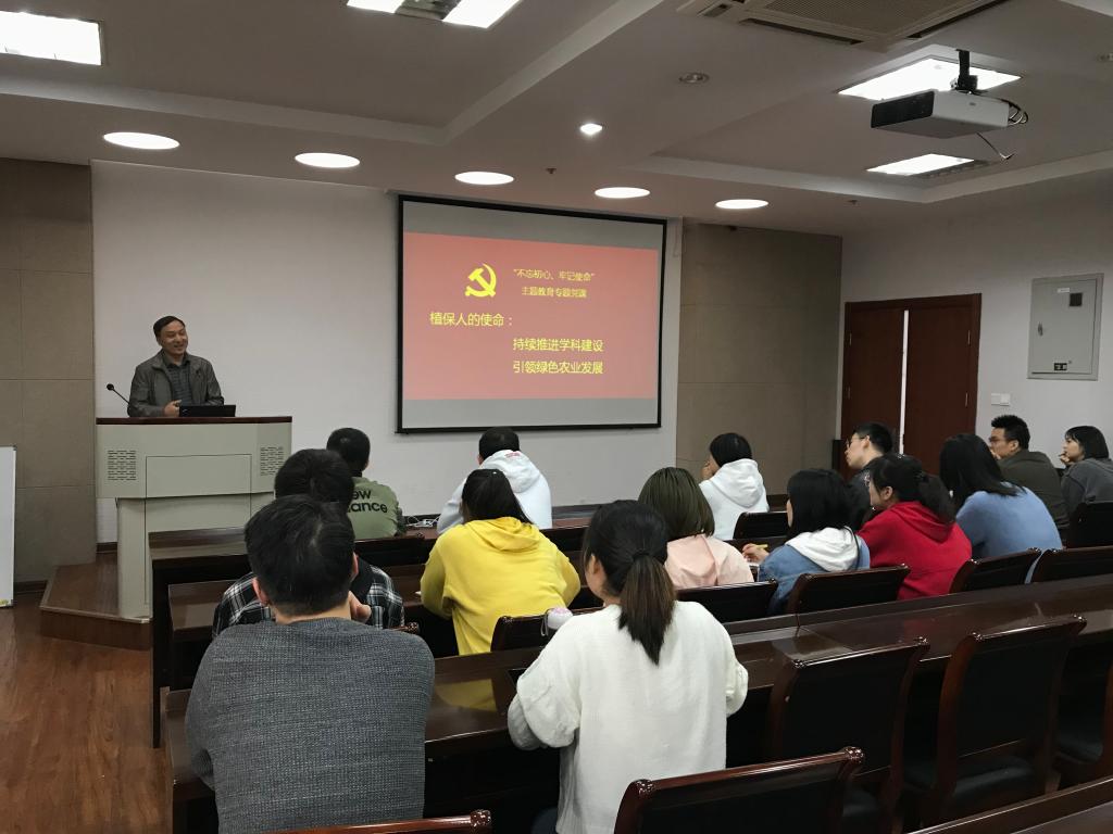 10月29日,学院党委副书记、院长王源超在广大青年师生党员中开讲“人民群众获得感与青年师生发展”专题党课。王源超指出植保人的初心和使命就是顺应国家和时代的发展需求,践行“绿水青山就是金山银山”的理念,不断促进植物保护学科进步,以更好解决实际生产问题,服务社会和人民需求。王源超对青年师生提出两点希望:一是明确目标和自身定位,不忘初心,及时纠错,有改弦易辙的勇气,在不断的超越自我中追寻获得感;二是加强学习交流,集百家之长,为己所用,最终将学科发展汇入国家发展的洪流,发挥其应尽职责。