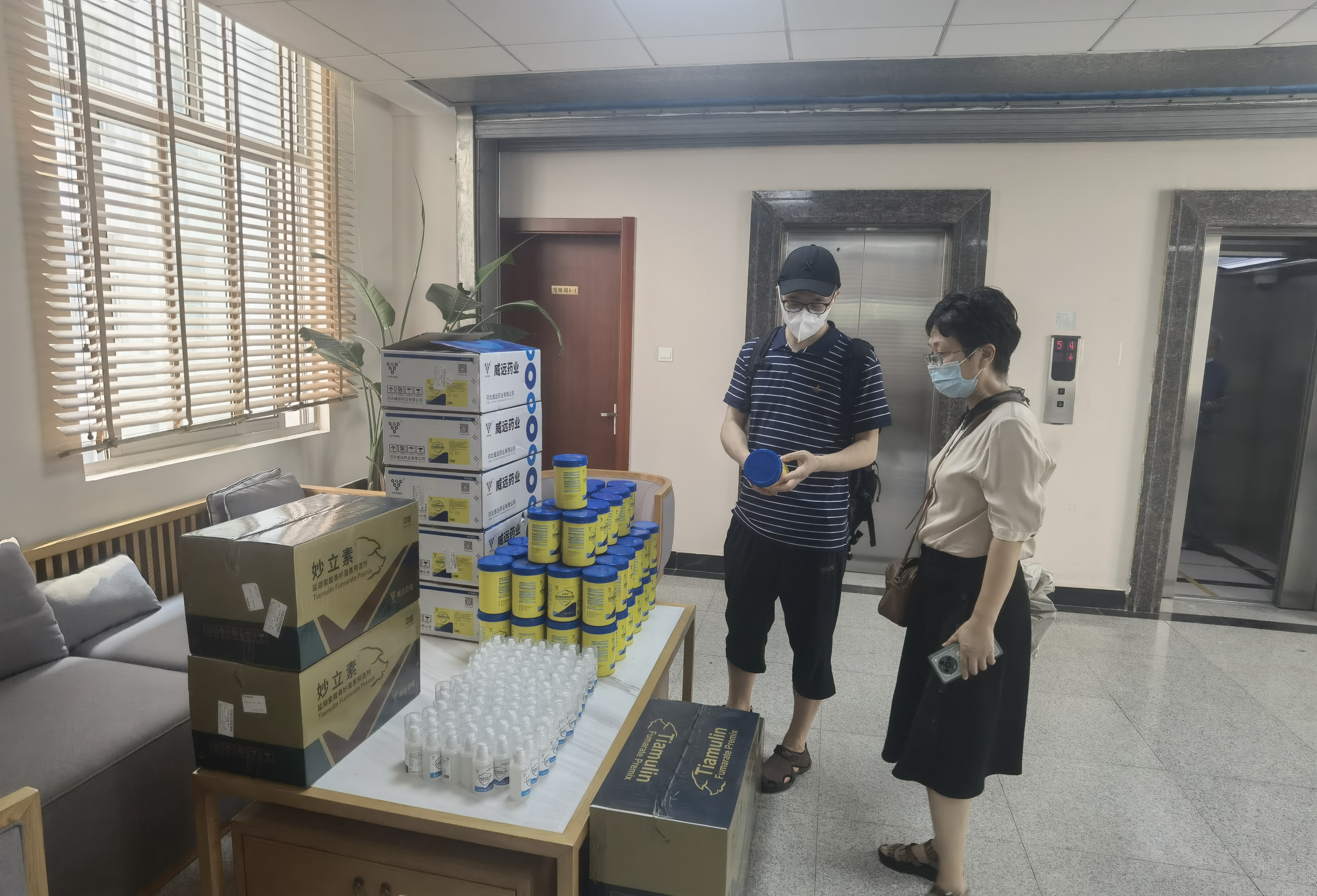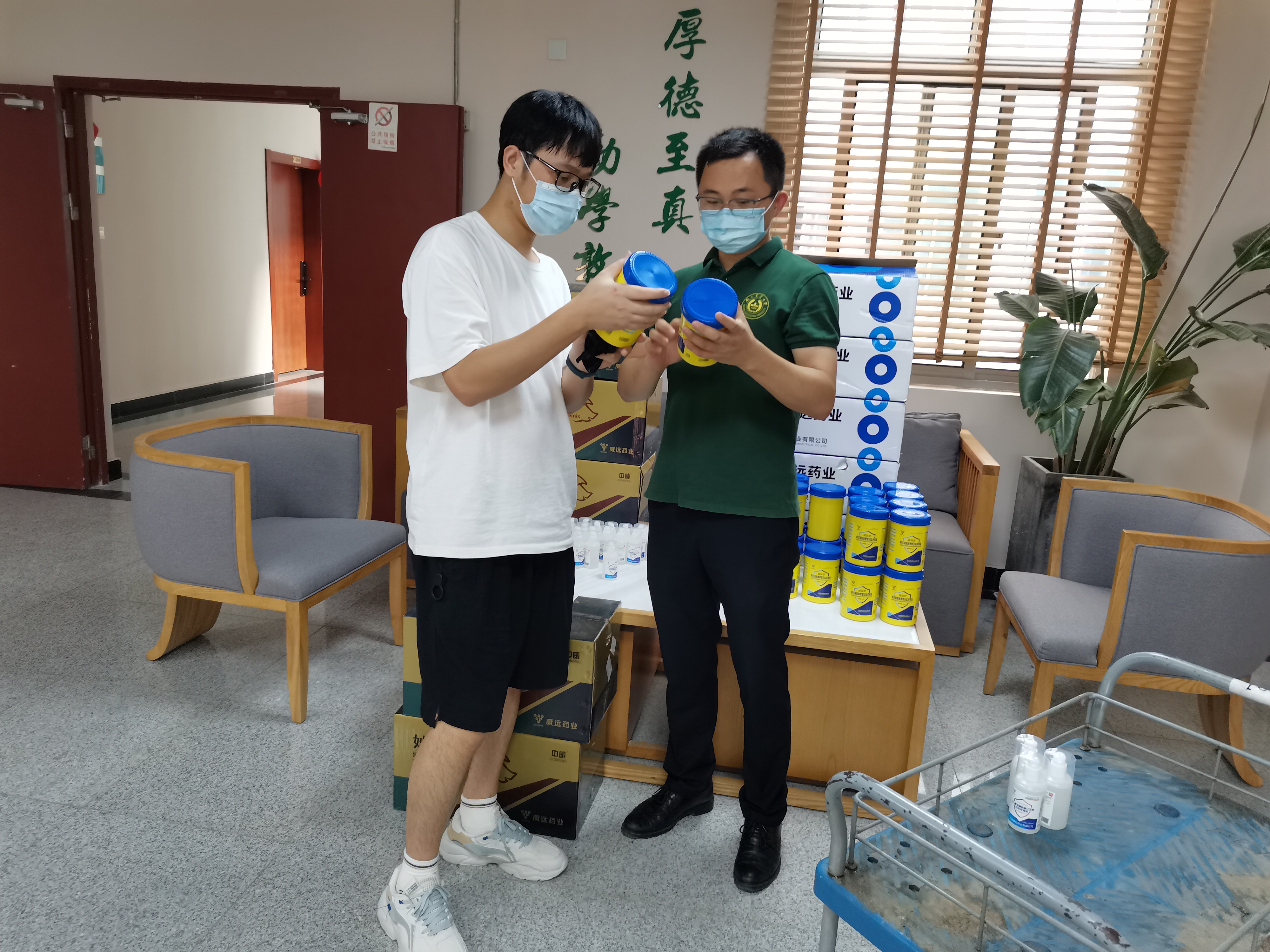 8月2日,为支援麻豆av 疫情防控工作,解决学院内各实验室、办公室在消杀用品方面的后顾之忧,利民控股集团股份有限公司向我院捐助500瓶消毒液和60桶消毒粉。在此,我院对利民控股集团的爱心捐助致以诚挚的谢意!
