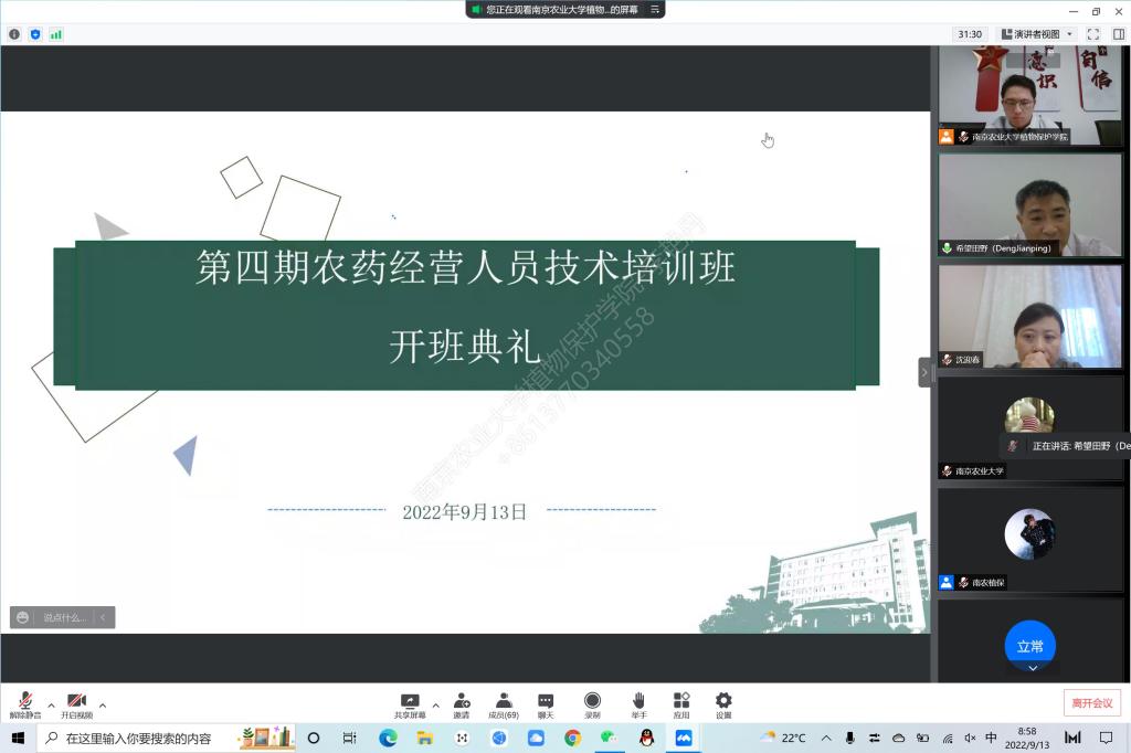 党委书记邵刚主持,江苏省农药总站站长邓建平出席开开班仪式并讲话。来自江苏、浙江、重庆等6个省的近百余名学员参加。