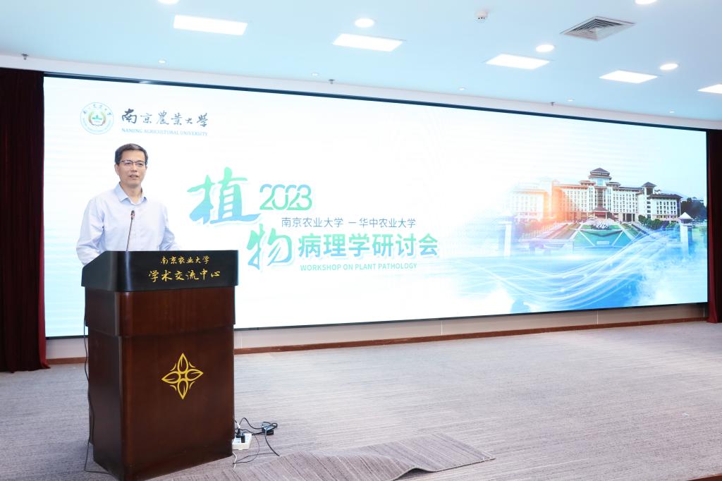 植物病理学系系主任陶小荣介绍了植物病理系的发展历史、学科配置以及科研现状。华中农业大学物病理学系系主任谢甲涛展示了华中农业大学植物病理学系在团队建设、教学和科研、社会服务等方面取得的成果。研讨会开幕式由麻豆av