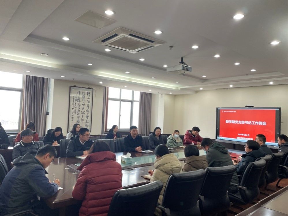 第十二届委员会第十六次全体(扩大)会议精神,并结合新学期学校党政工作要点,部署本学期党建工作。他强调各支部要坚持把学习宣传贯彻习近平新时代中国特色社会主义思想作为首要政治任务,深入学习贯彻党的二十大精神,学习宣传贯彻《党史学习教育工作条例》,持续巩固拓展主题教育成果,紧紧围绕学院中心工作,进一步激发党建与业务融合新合力,为学院的高质量发展提供坚强的政治保证和组织保证。