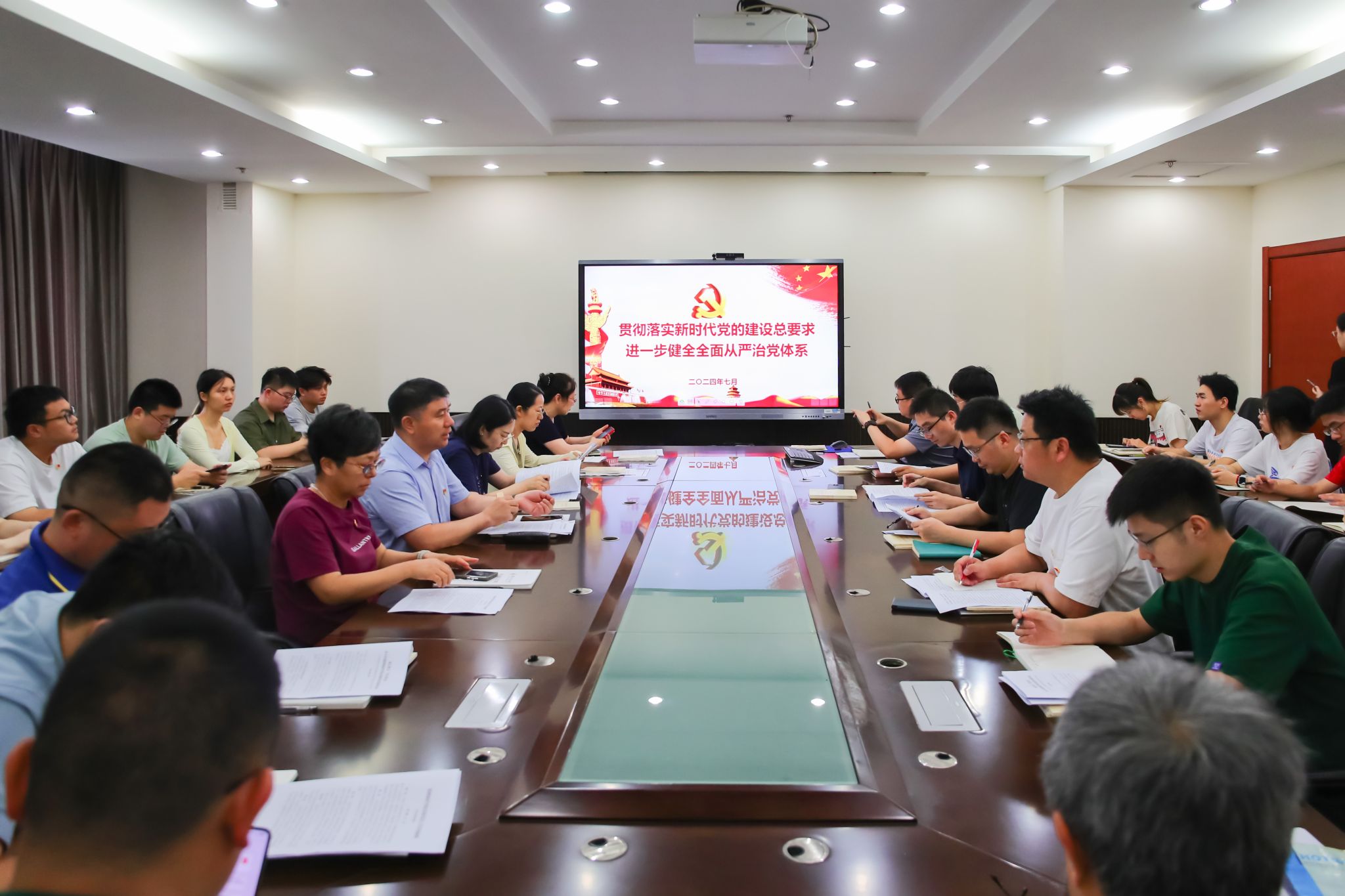 7月3日下午,在理科楼C306会议室,我院党委书记许承保以“贯彻落实新时代党的建设总要求,进一步健全全面从严治党体系”为主题,为学院全体党支部书记和部分研究生党员代表上党纪学习教育专题党课。