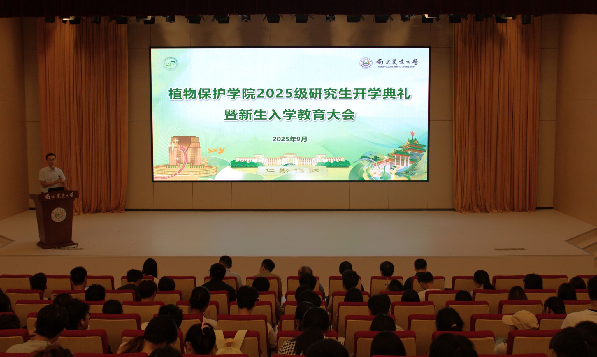在滨江校区会议中心阶梯报告厅举办2025级研究生开学典礼暨新生入学教育大会。学院党委书记张正光,副院长(主持工作)董莎萌,副院长刘鹏程、张进,植物病理学系副主任、青年长江学者刘木星,研究生辅导员罗舜文、鞠然然出席会议,2025级全体研究生新生参会,会议由学院党委副书记陈志亮主持。