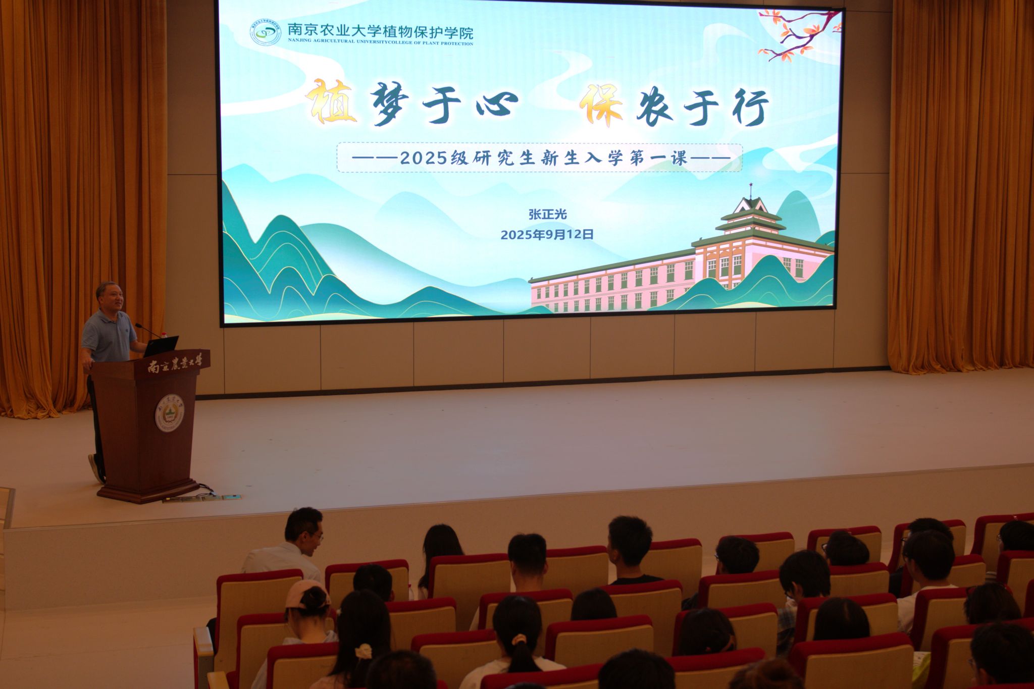 张正光以《植梦于心 保农于行》为主题作新生入学教育第一课。他从“立足专业:认识植保,热爱植保”“行为准则:守牢底线,追求高线”“使命担当:心怀家国,锤炼本领”“成才之路:认识自我,规划生涯”“殷切期望:无愧青春,未来可期”五个篇章,向新生介绍了学院厚重的学科历史和科研氛围,表达了对新生的殷切期望和嘱托,勉励新生在专业领域深耕不辍、勇毅前行。