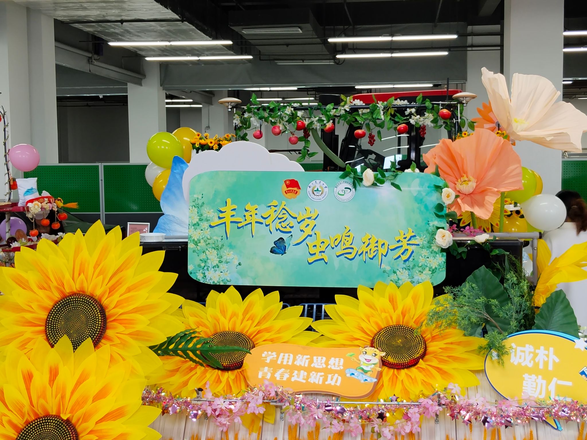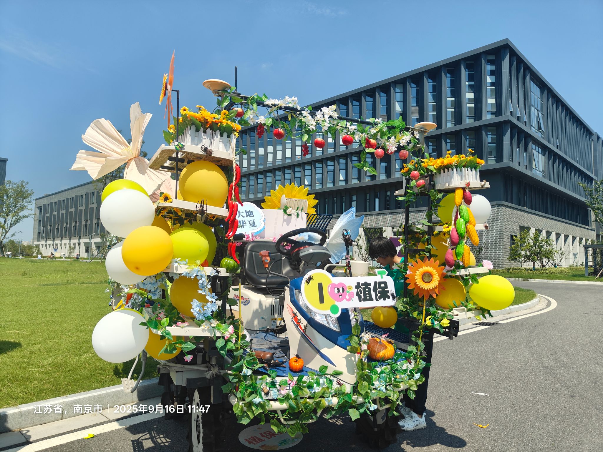 植保院的“丰年稔岁·虫鸣御芳号”花车,以“植保学科+丰收庆典”为核心,将植保人的专业浪漫融入每一处细节:向日葵笑靥迎客,麦穗在车侧呈现“麦浪翻滚”之态,葡萄堆成丰收小山,更有锹甲、蝴蝶等昆虫标本藏于花车,以静默的方式讲述农作物与自然生态相生相护的关系。