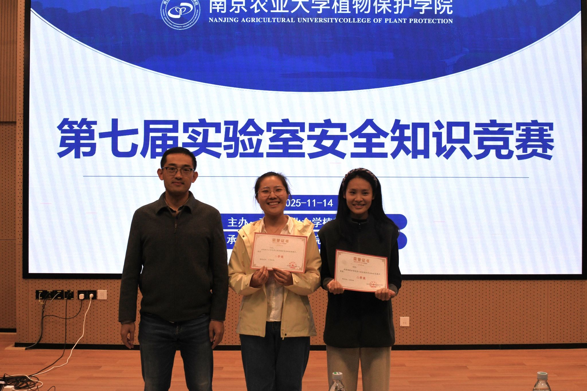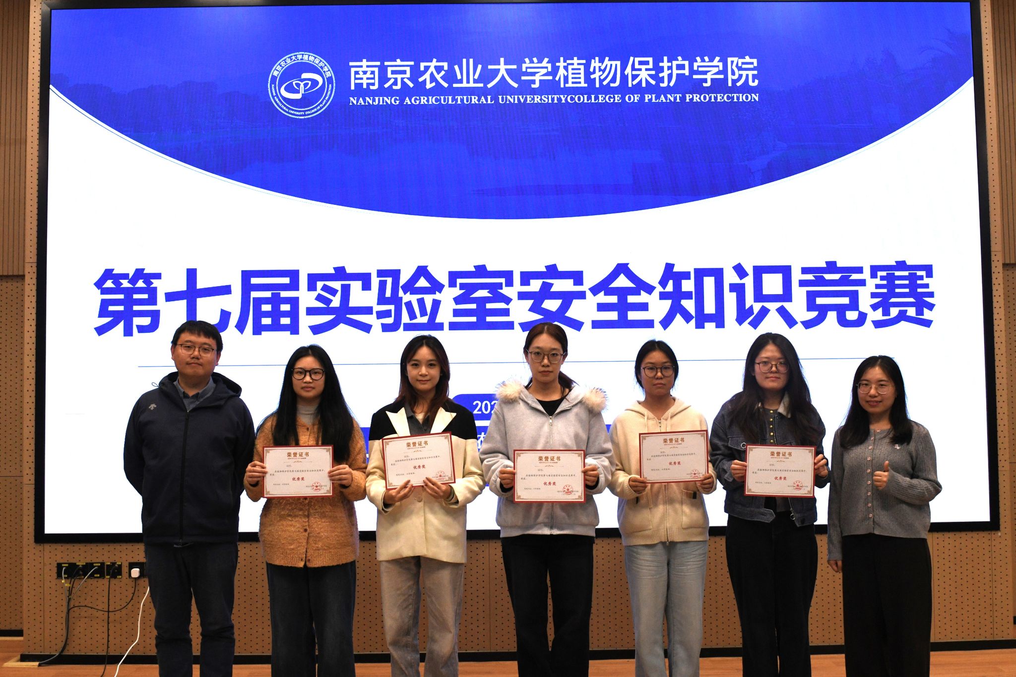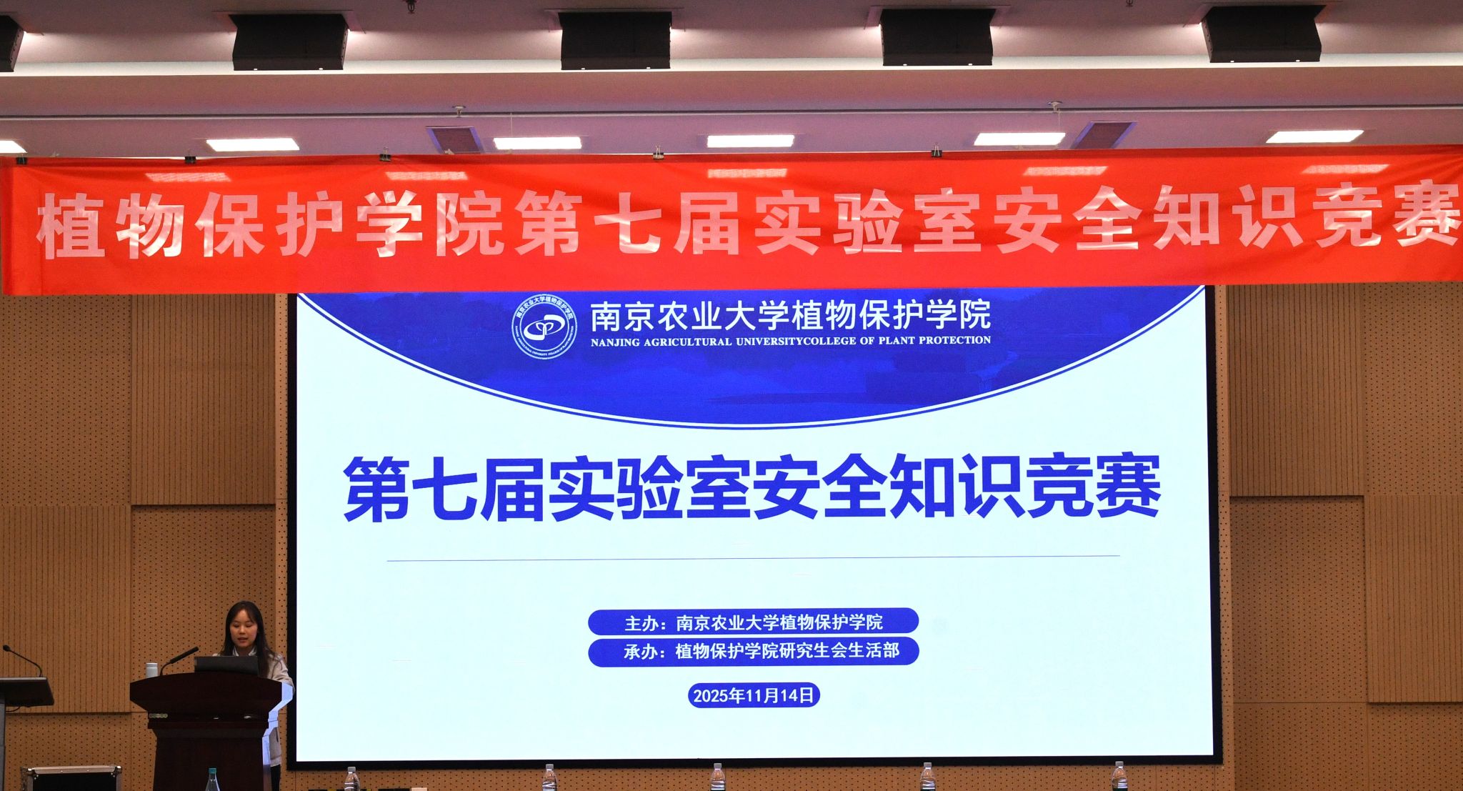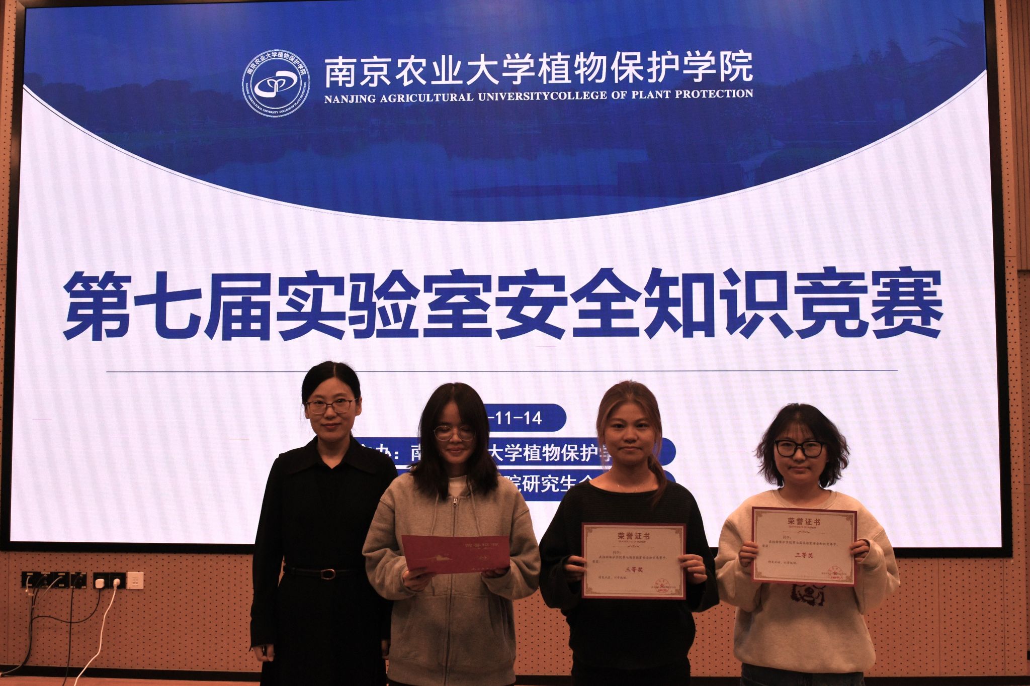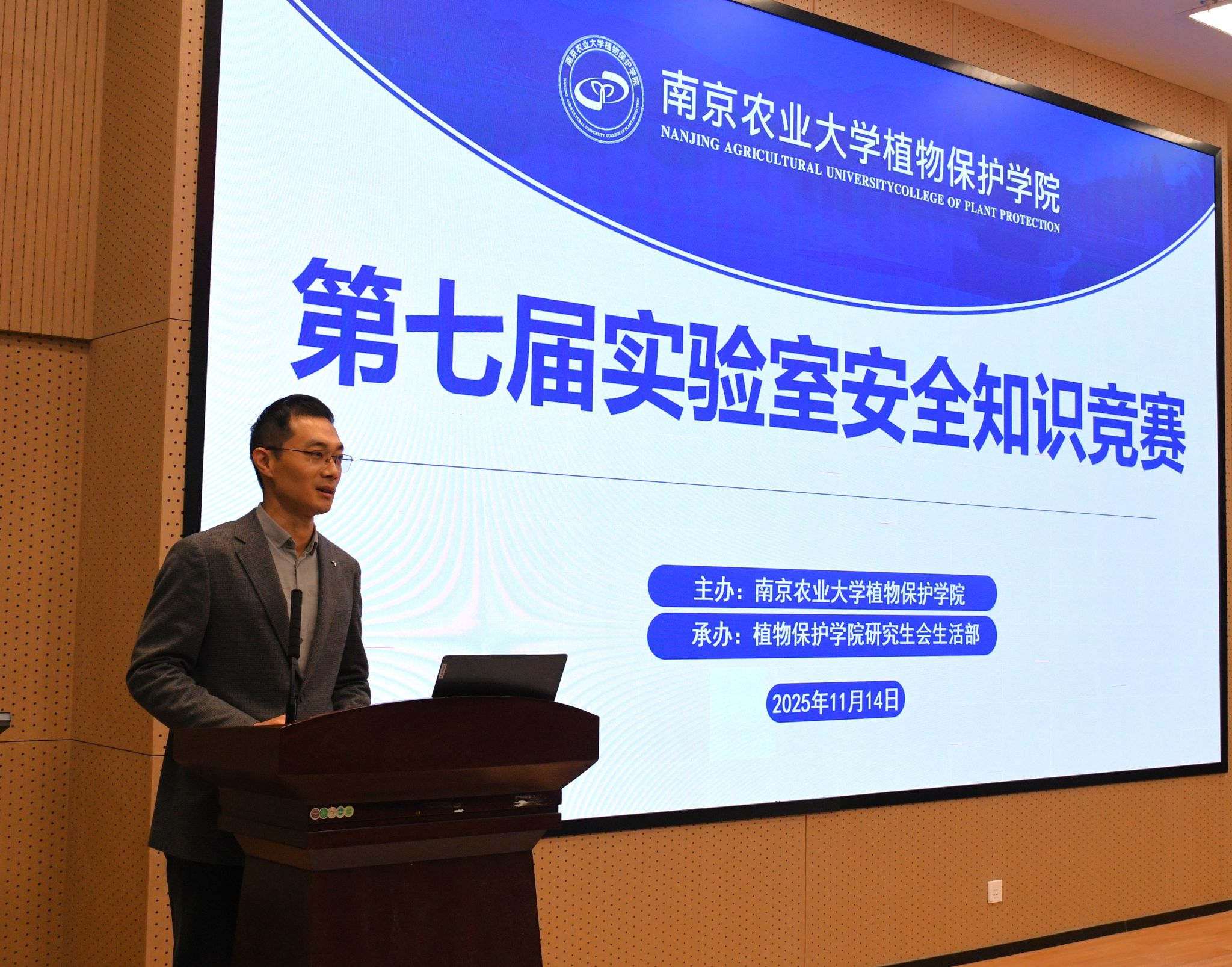 第七届实验室安全知识竞赛于滨江校区21号楼112报告厅顺利举行。学院党委副书记陈志亮、学院副院长张进、实验室与基地处分析测试中心科长叶敏、昆虫系教授金琳、研究生辅导员鞠然然出席活动。来自各个实验室的11支队伍通过三轮综合比拼,争夺最终的荣誉。