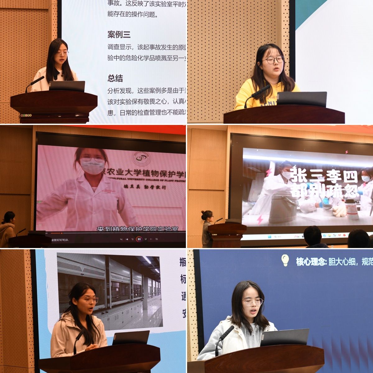 复赛阶段为展示环节,以实验室安全为主题进行3分钟视频或PPT汇报展示,由现场嘉宾评委进行评分,最终成绩排名前三的队伍晋级决赛。