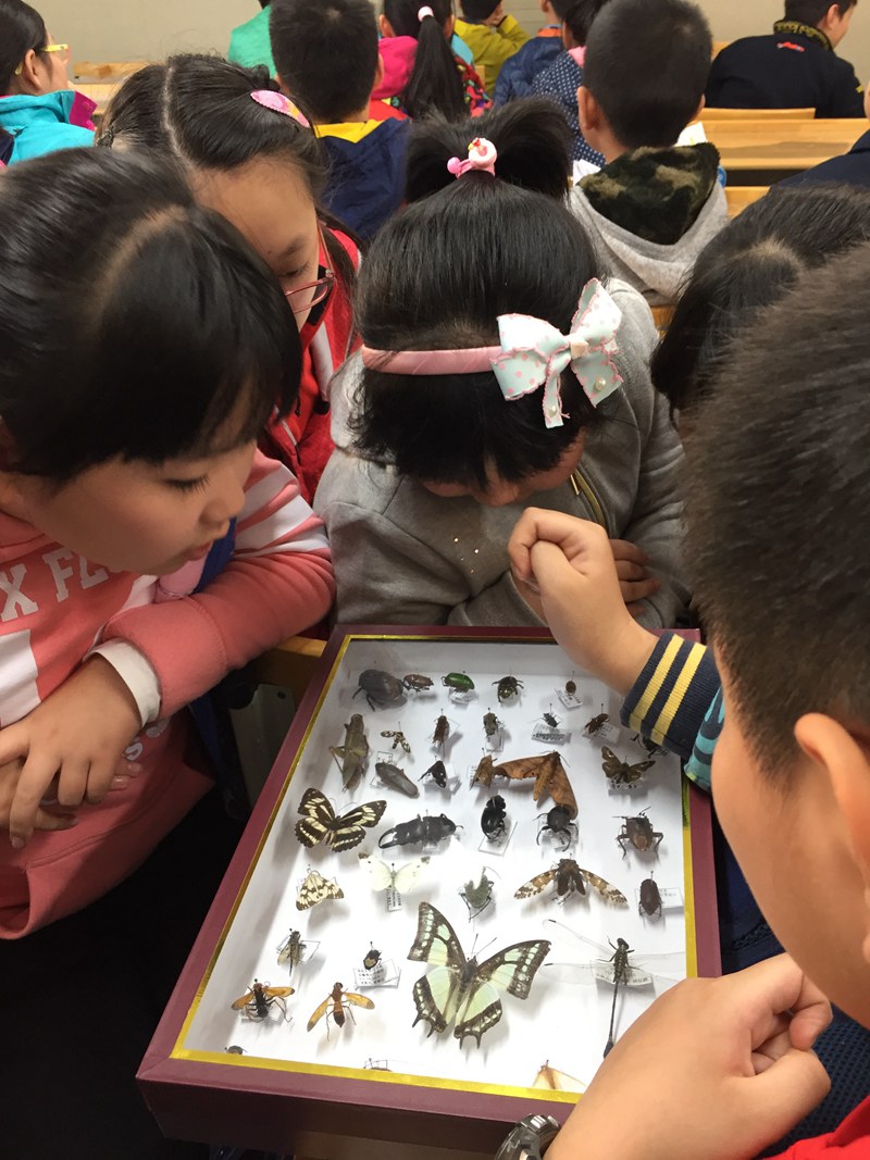 首先开始讲解的是何杨兰,她主讲的内容是关于植病方面的知识,小朋友们都十分认真地听着。接下来周源淋拿出一版昆虫标本马上抓住小朋友们的眼球,在昆虫标本被传阅的过程中,周源淋为小朋友们讲解飞蛾、蝴蝶等昆虫的有关知识。紧接着本次课堂的高潮到了,高雅为大家讲解国家二级保护动物中华虎凤蝶,在与小朋友们的互动中,高雅用一个短小的视频来展示了虎凤蝶的一生,小朋友们的注意瞬间便集中起来,课堂气氛也更加活跃了。最后是王恺言跟小朋友分享了关于杂草的知识。当所有的主讲人讲解完关于植保的知识后,小朋友进行自我创作,他们虽然只有五年级,但是他们的作品已经充分显示他们不俗的才华,值得鼓励和赞扬。
