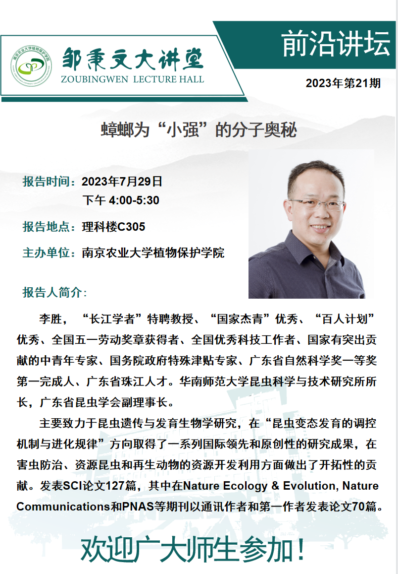 邹秉文大讲堂之前沿讲堂—蟑螂为“小强”的分子奥秘