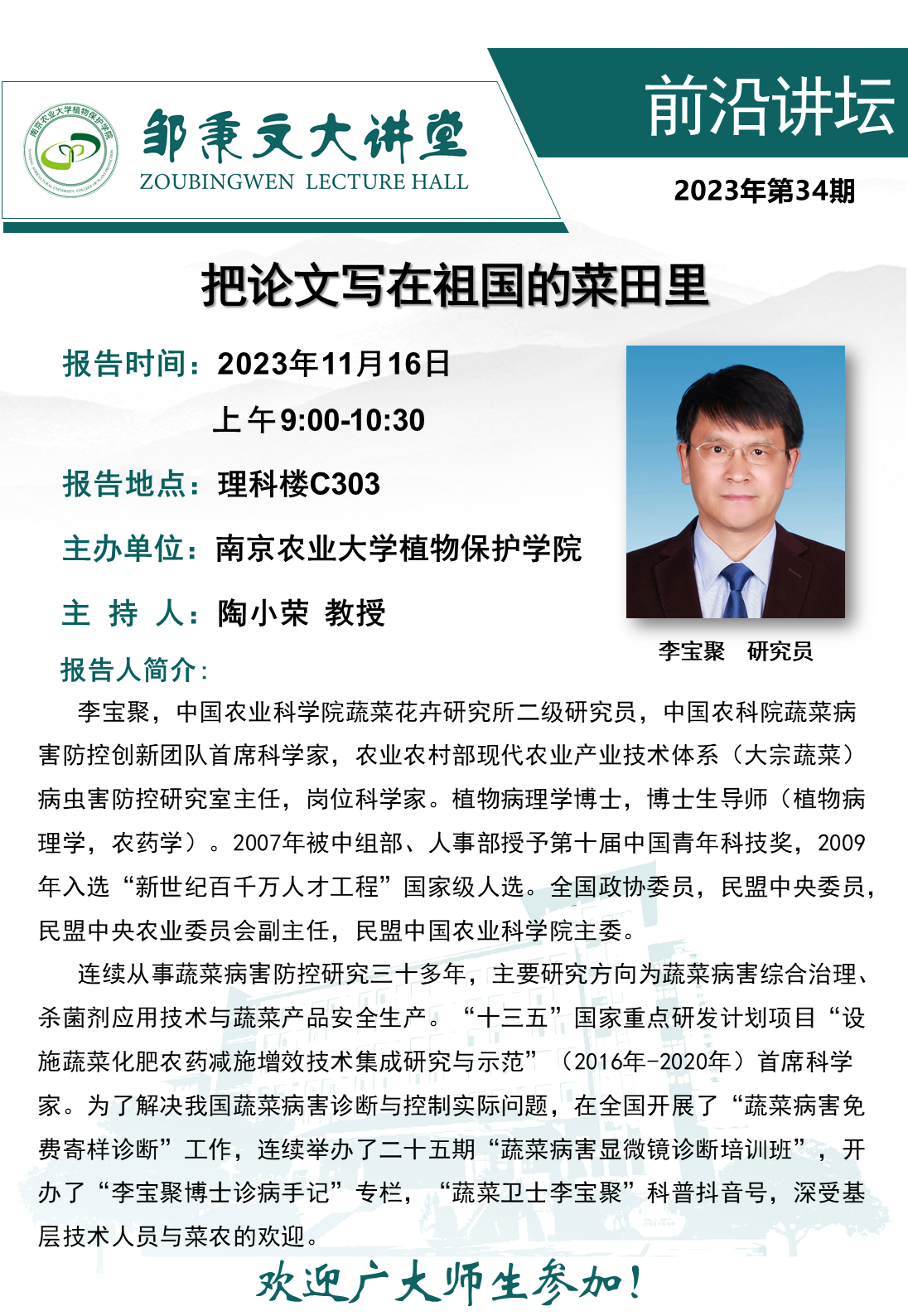 邹秉文大讲堂之前沿讲堂-把论文写在祖国的菜田里