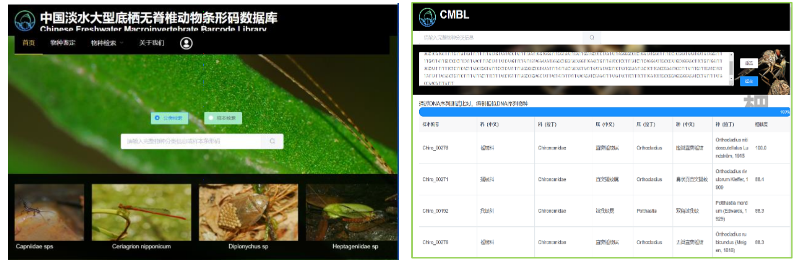 数据库已收录5600余种中国习见淡水大型底栖无脊椎动物种名录,完成了800余个底栖动物物种1100余条线粒体COI条形码的入库。数据库注册用户可以在线进行底栖动物COI条形码和环境DNA宏条形码数据的比对工作,进而完成物种的精准注释以及物种名录检索等。本数据库的最大特点是所有物种名录均由分类学专家审定确认,且每一条入库条码直接来自分类专家精确鉴定的结果,确保了每一条COI条形码与形态学物种的一致性。接下来,我们会逐步将其他的分子标记数据(12S,16S等)上传到该数据库中,以满足不同生物类群的比对注释需求。