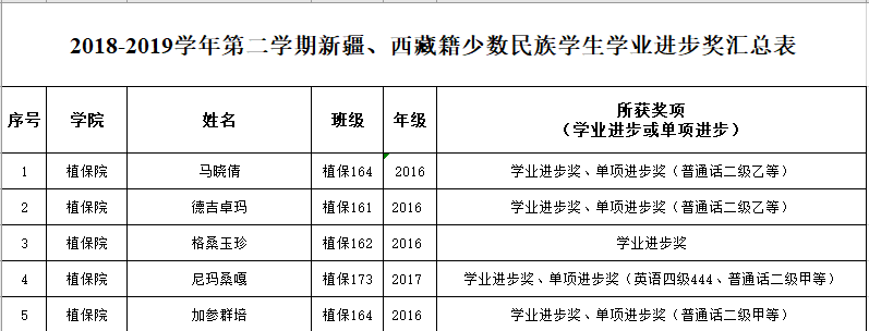 经学生申请、材料审核,现将2018-2019学年第二学期新疆、西藏籍少数民族学生学业进步奖评定结果公示如下: