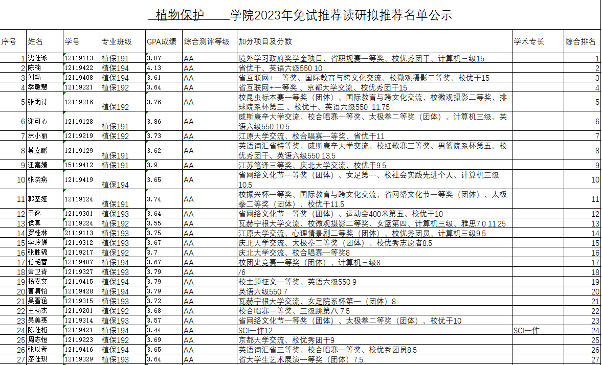 根据《麻豆av 关于做好2023年推荐优秀应届本科毕业生免试攻读研究生推荐工作的通知》文件精神,经学生自愿申请,学院初步审核以及资格认定答辩,依据《麻豆av 2023年推荐免试研究生(含“直博生”)工作方案》综合排名,现将最终拟推荐名单公示如下(按综合成绩排名排序):