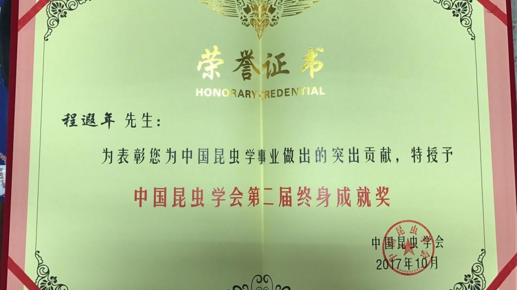 我院退休教师程遐年教授获中国昆虫学会“终生成就奖”
