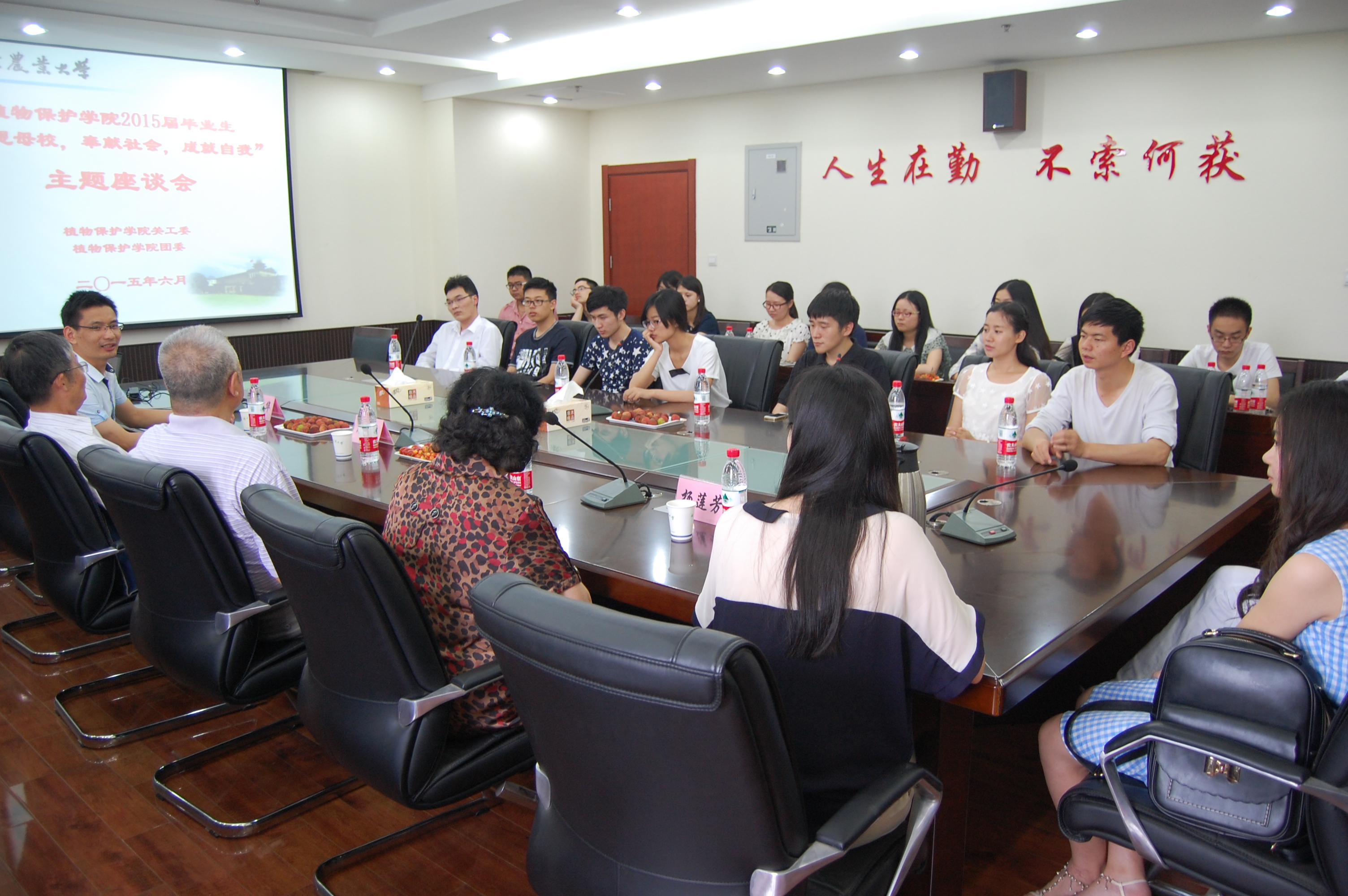 6月10日下午,植保院在理科楼C306报告厅召开2015届毕业生“感恩母校,奉献社会,成就自我”主题座谈会。退休教授沈晋良、王金生、杨莲芳,院党委副书记黄绍华,院辅导员李艳丹出席会议。