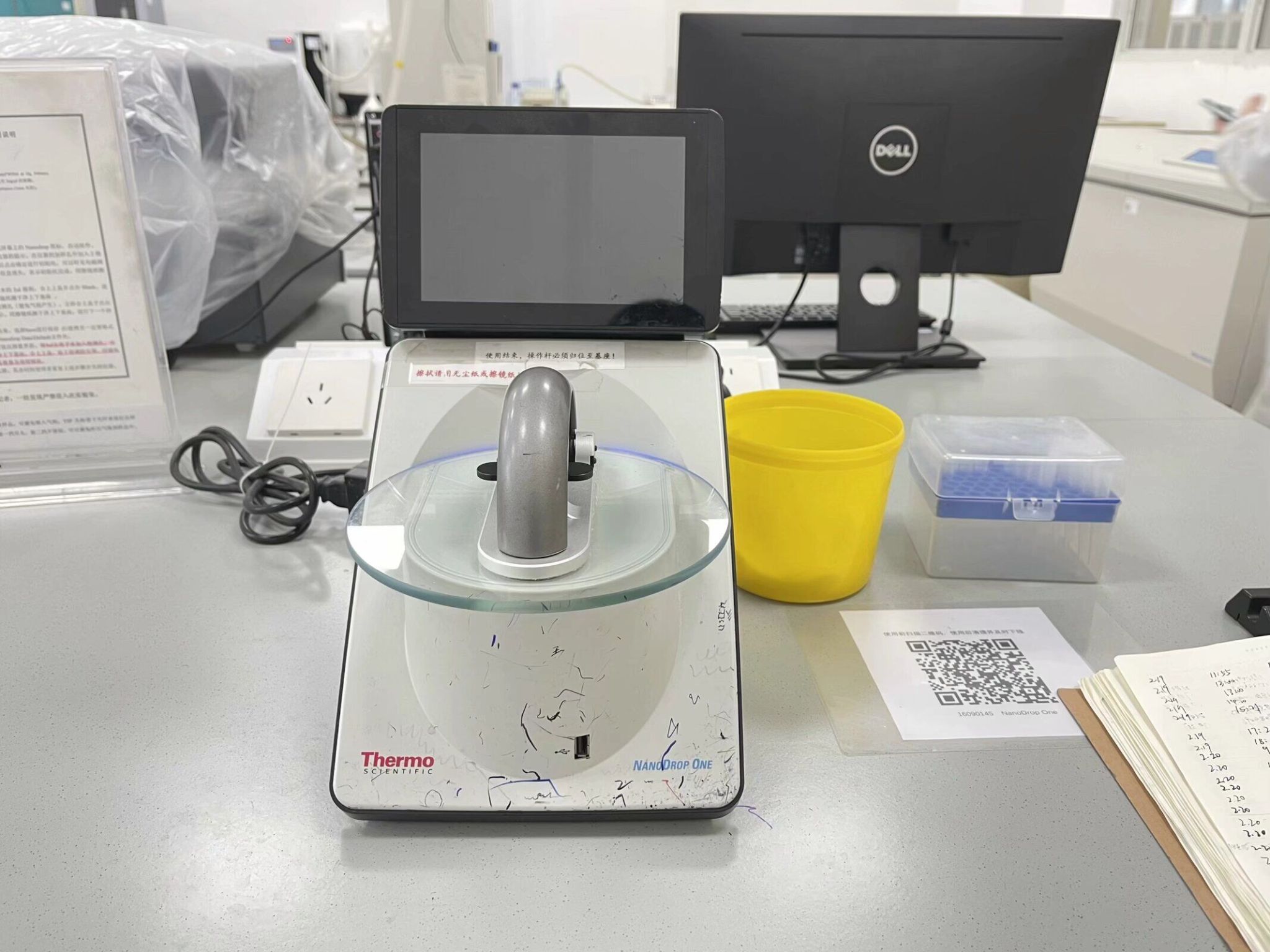 Nanodrop的工作原理是基于紫外-可见光吸收光谱法,当特定波长的紫外光穿过含有生物分子的溶液时,这些分子会吸收部分光线,其吸收程度与分子的浓度成正比。通过测量特定波长下光线的吸收值,可以计算出样品中生物分子的浓度。同时,通过测量不同波长下的吸收比值(如A260/A280、A260/A230),还可以评估样品的纯度。该仪器广泛用于生命科学领域,特别是分子生物学和生物化学实验中。